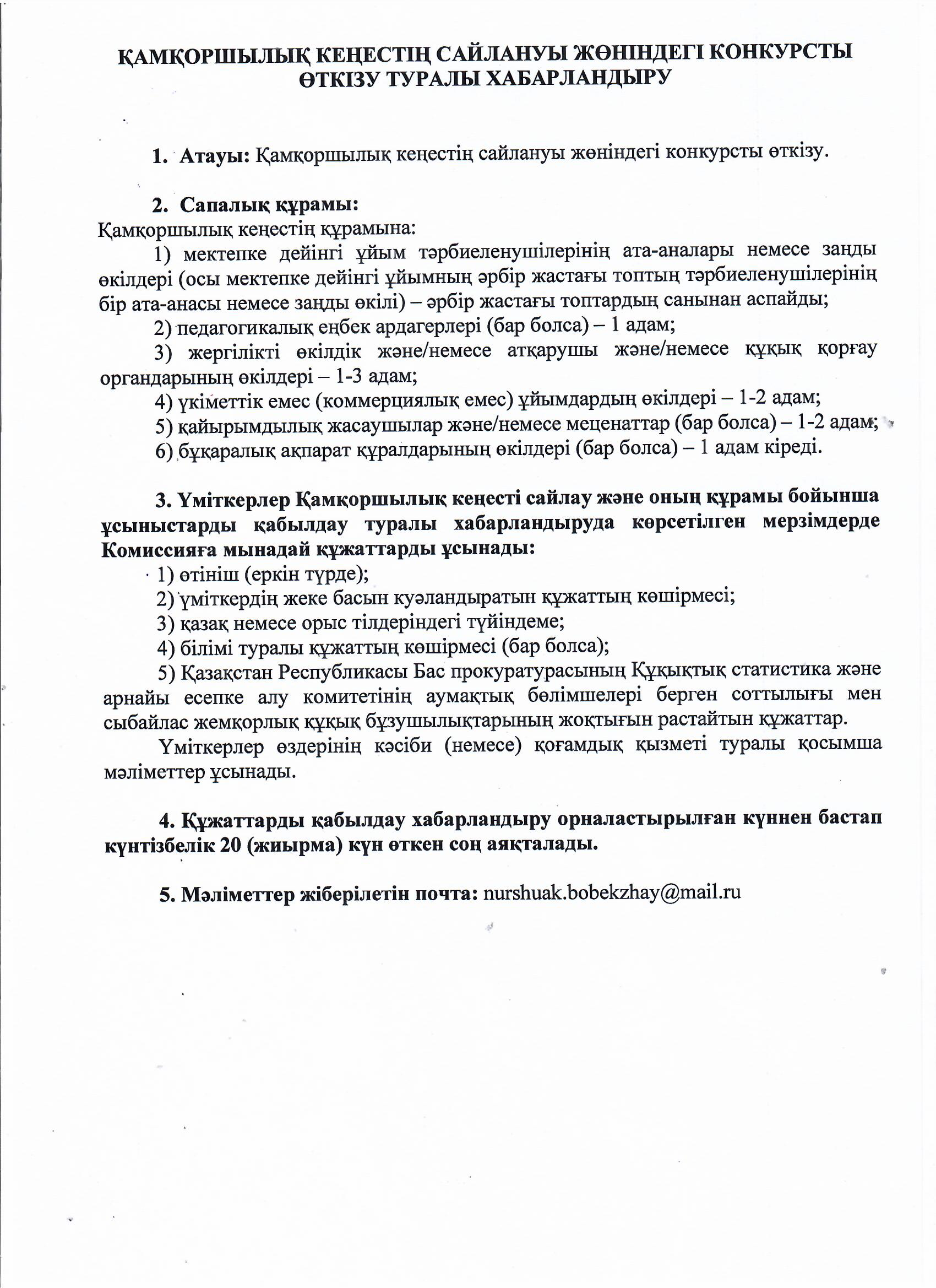 10 сентябрь 2025 0 1 2 3 4 5 ҚАМҚОРШЫЛЫҚ КЕҢЕСТІҢ САЙЛАНУЫ ЖӨНІНДЕГІ КОНКУРСТЫ ӨТКІЗУ ТУРАЛЫ ХАБАРЛАНДЫРУ