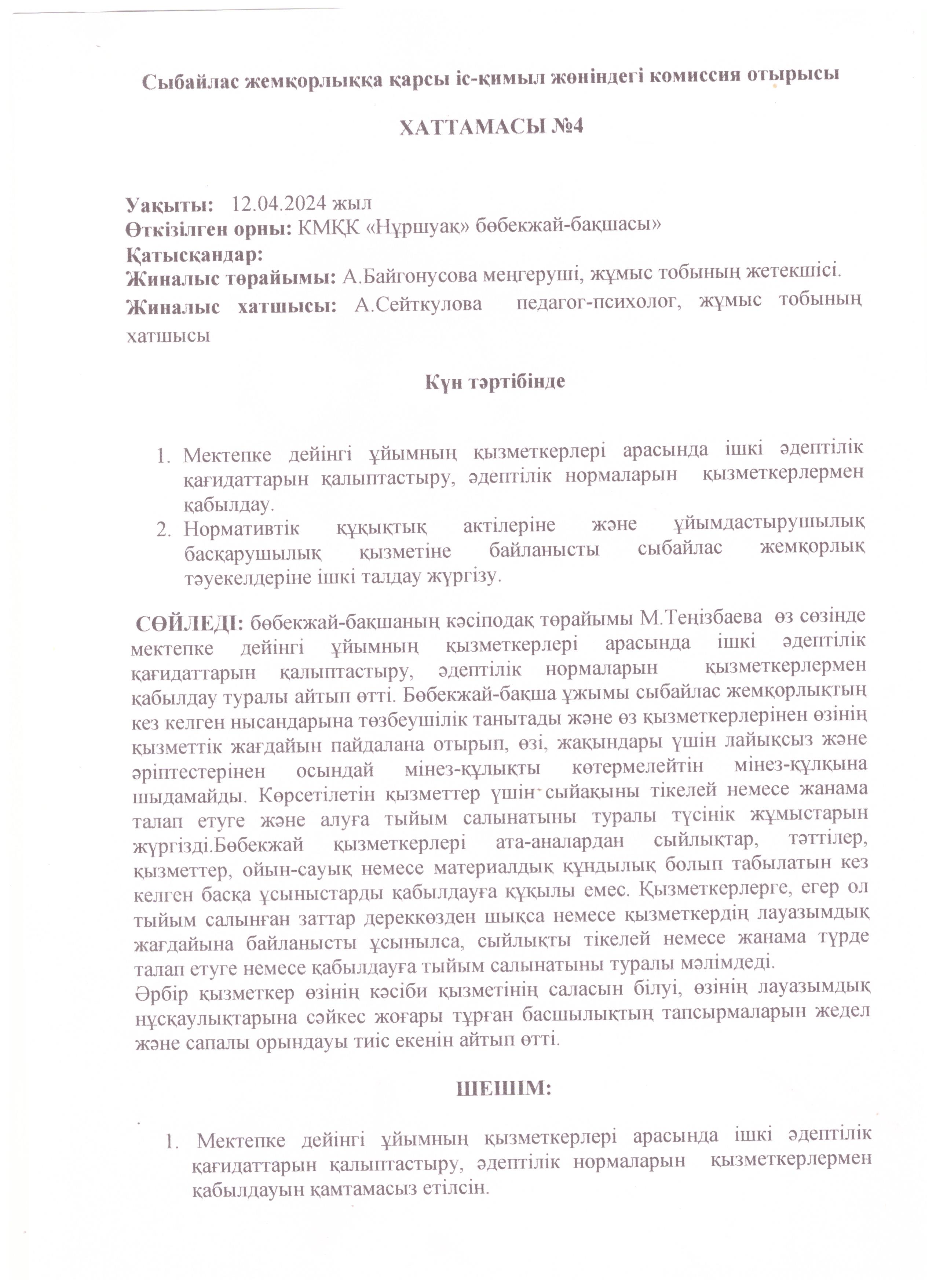 » Сыбайлас жемқорлыққа қарсы іс-қимыл жөніндегі комиссия №4 отырысы
