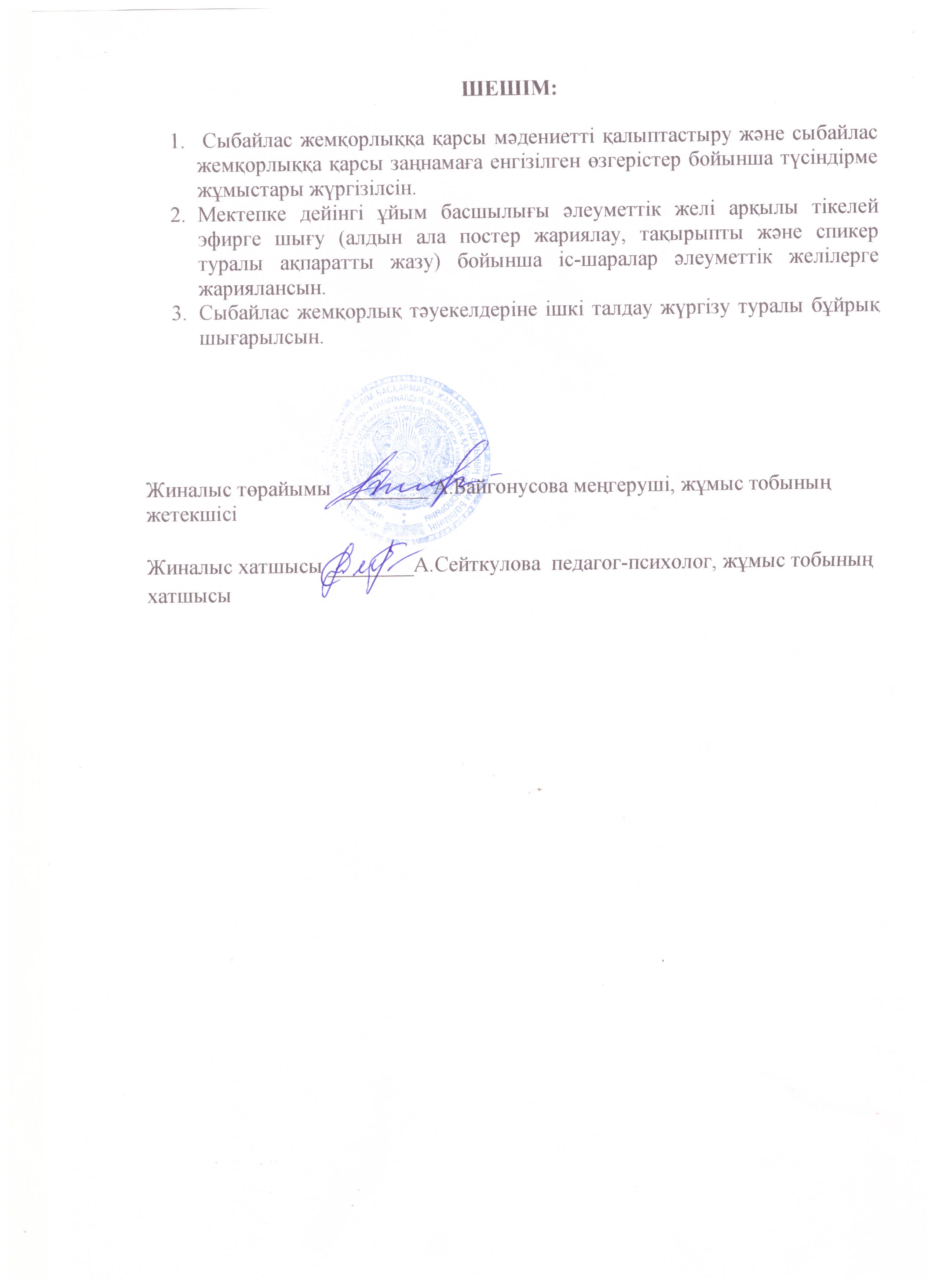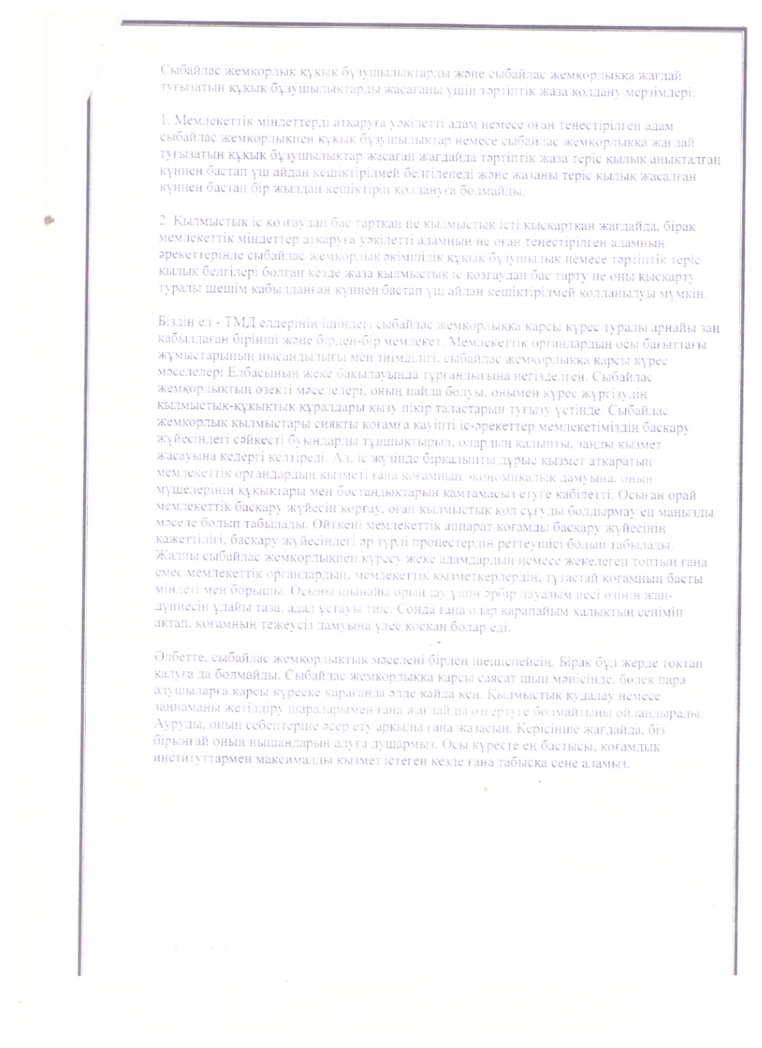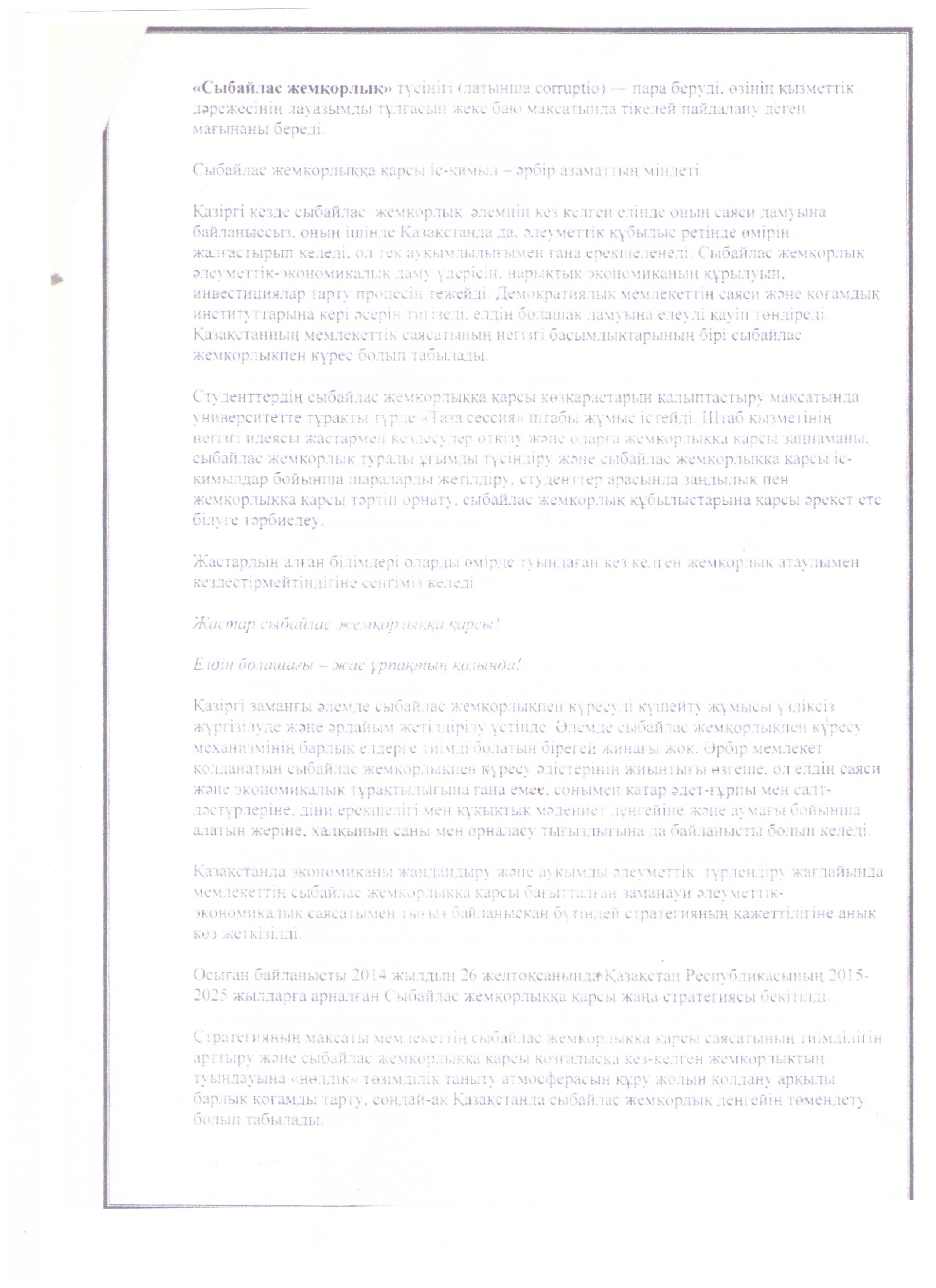 СЫБАЙЛАС ЖЕМҚОРЛЫҚҚА ҚАРСЫ ІС-ҚИМЫЛ