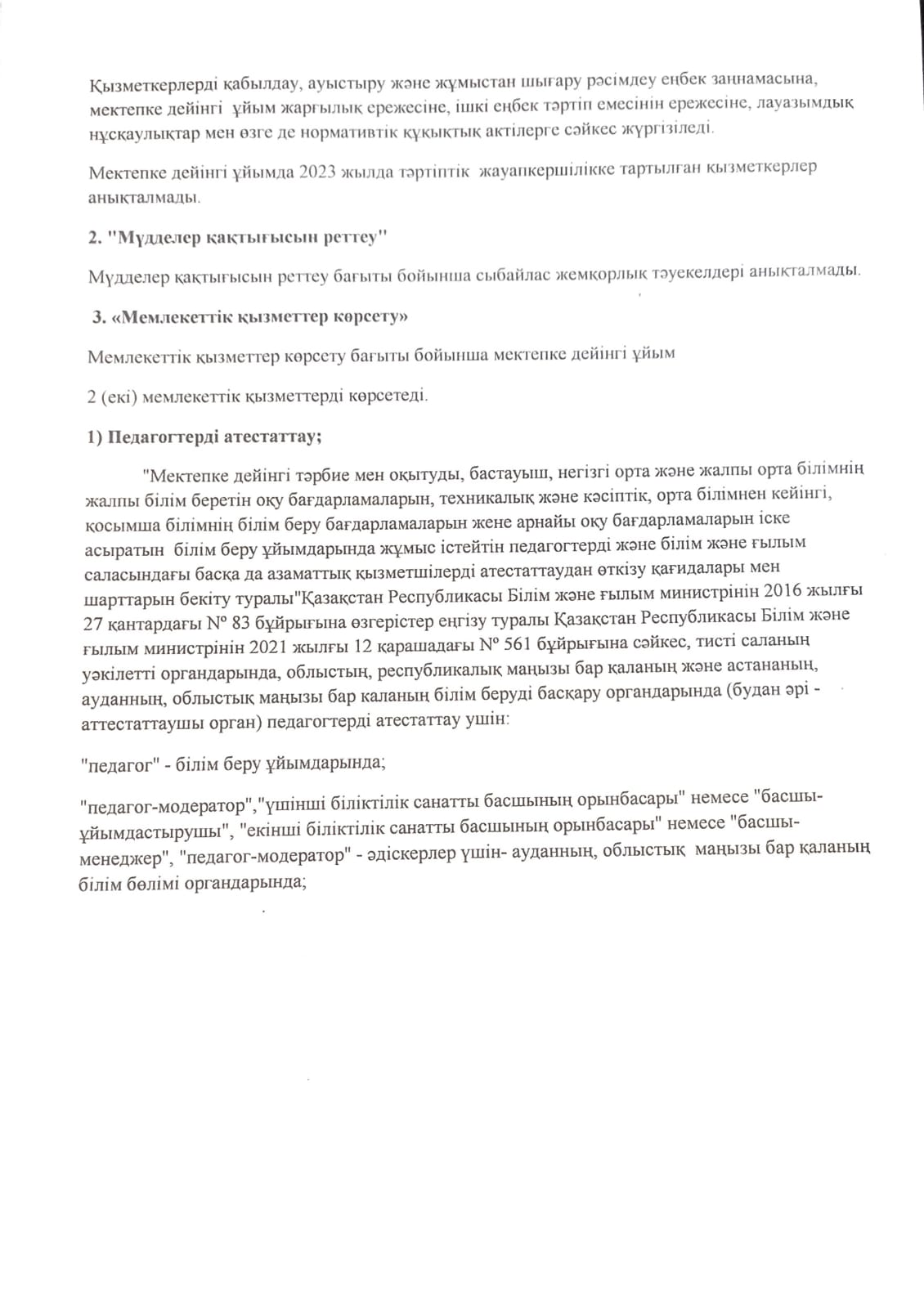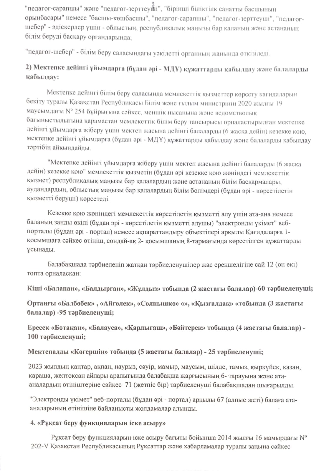 "Мектепке дейінгі білім беру ұйымдарына құжаттарды қабылдау және балаларды қабылдау" мемлекеттік көрсетілетін қызмет регламенті