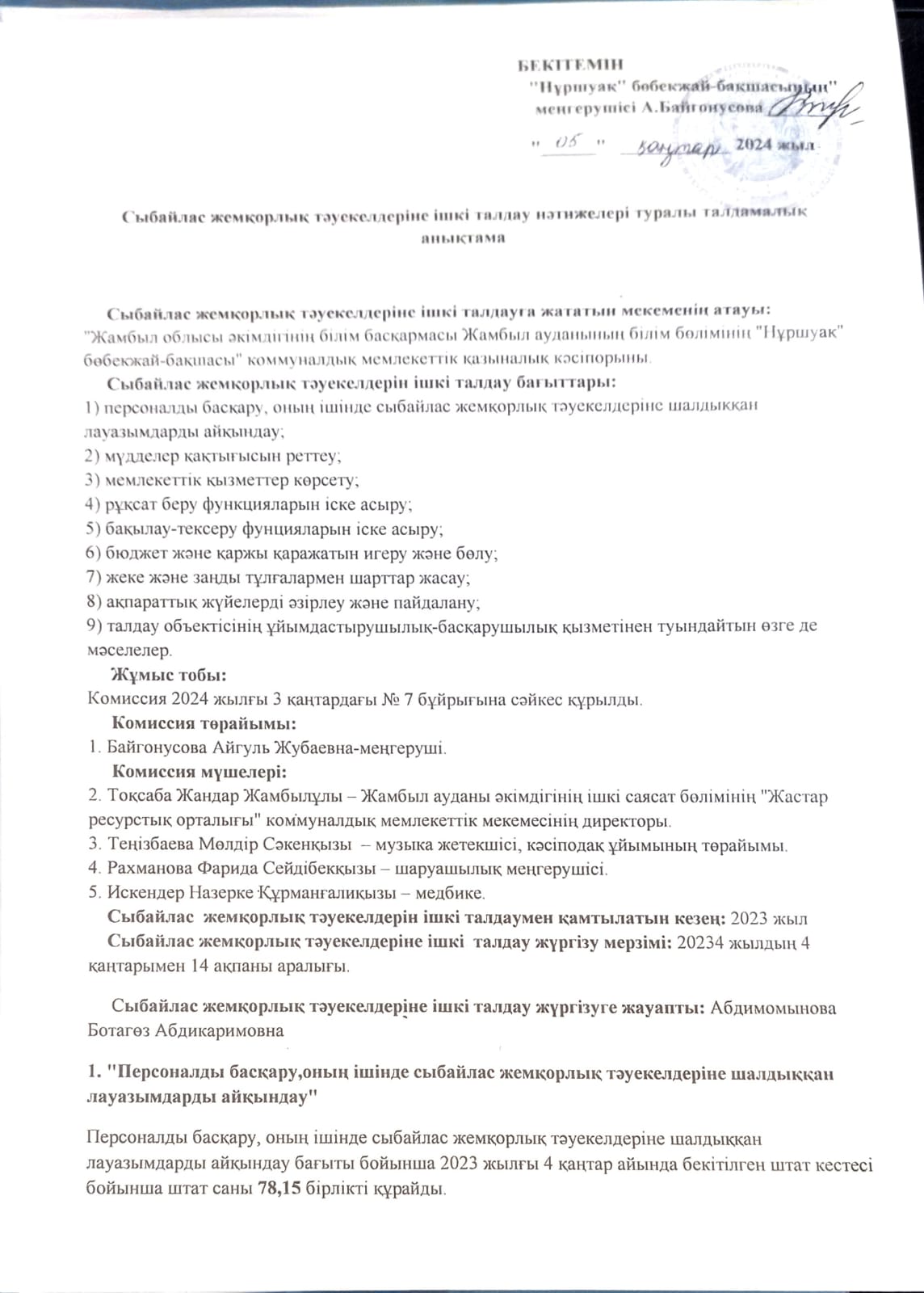 » Сыбайлас жемқорлық тәуекелдеріне ішкі талдау жүргізу туралы