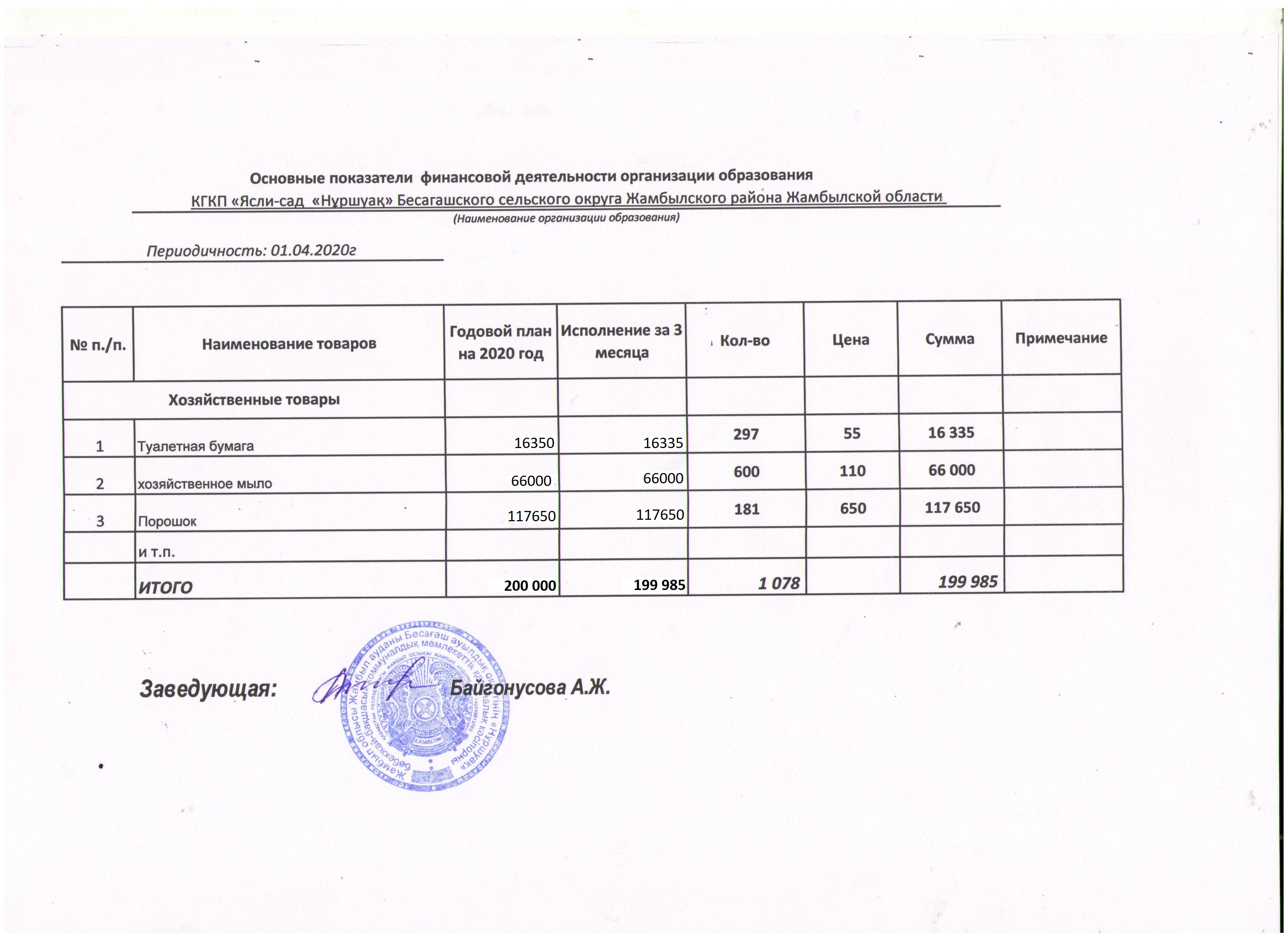 АШЫҚ БЮДЖЕТ" ДЕРЕКТЕРІ БОЙЫНША Жамбыл ауданы Бесағаш ауылдық округінің КМҚК «Нұршуақ» бөбекжайының 2018 ЖЫЛҒА БӨЛІНГЕН ҚАРЖЫ ДЕРЕКТЕРІ