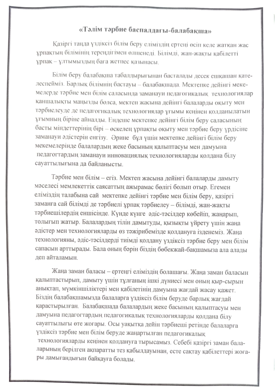 » "Тәлім тәрбие баспалдағы-балабақша"