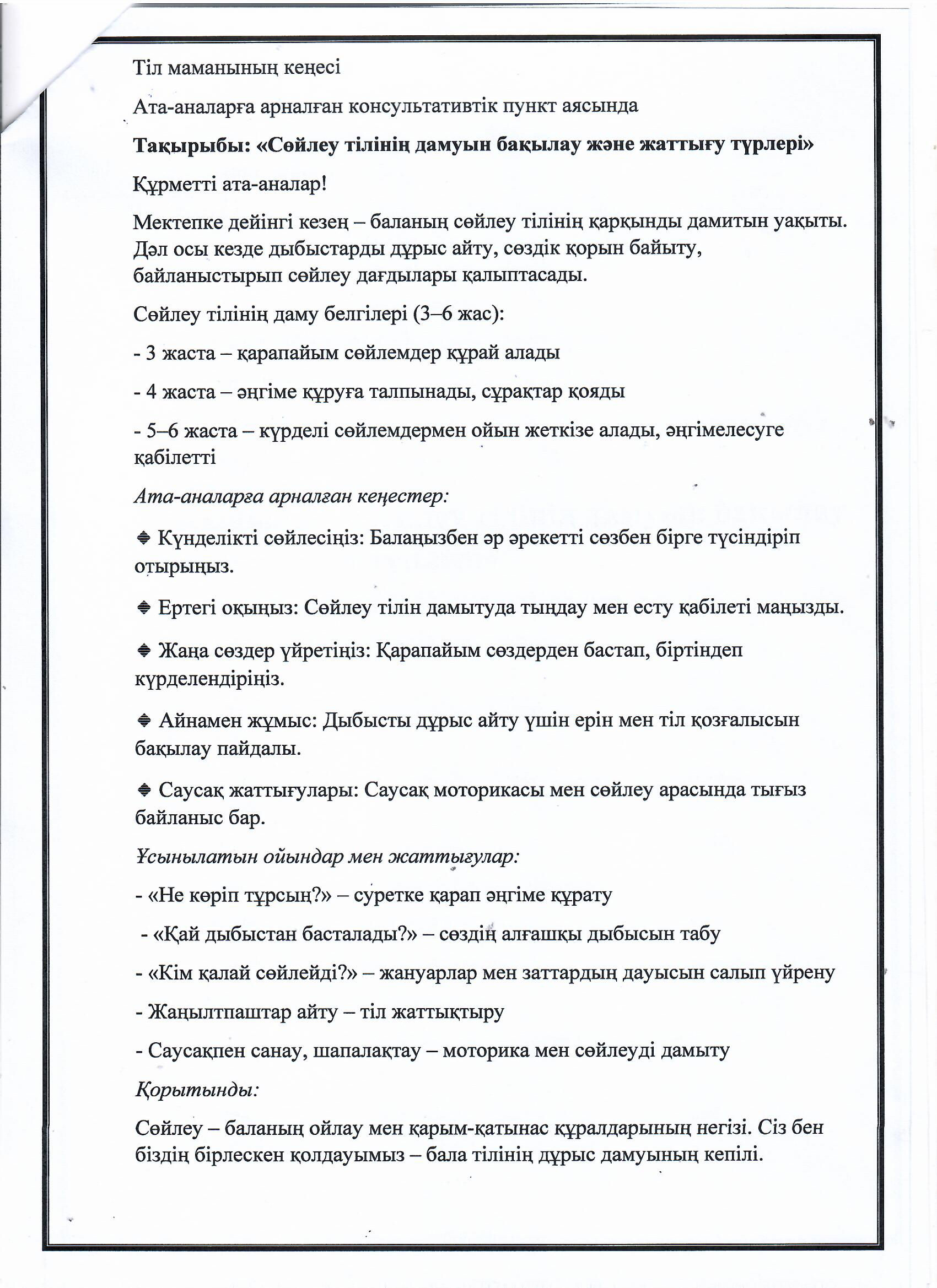 2025-2026 оқу жылының консультациялық пункт жұмысының перспективалық жоспары