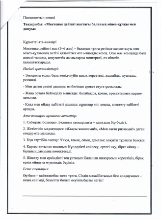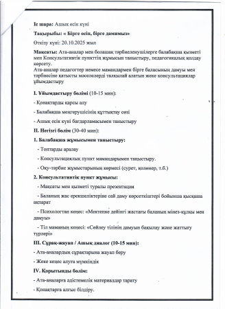 Ашық есік күніне арналған консультативтік пункт жұмысының жоспары