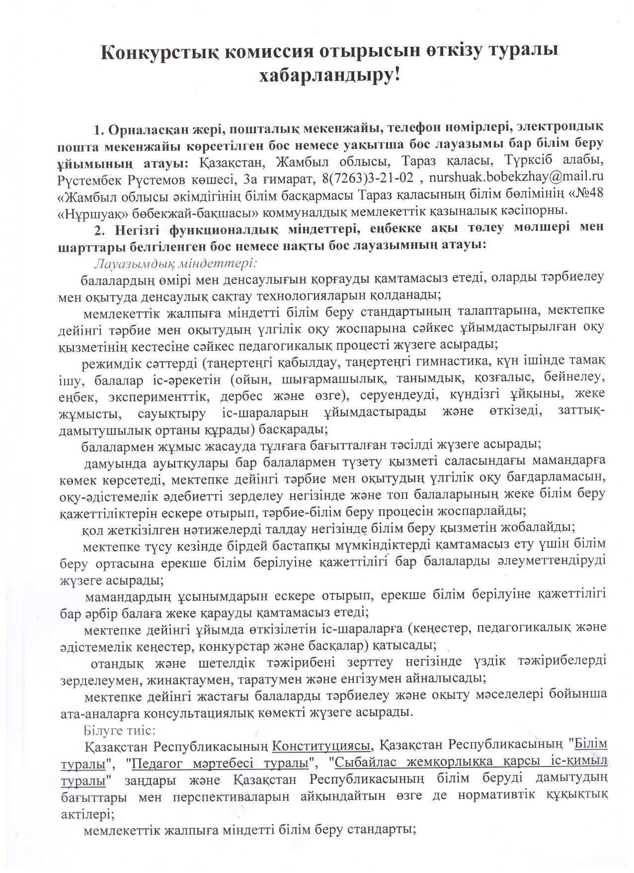 » Конкурстық комиссия отырысын өткізу туралы хабарландыру!