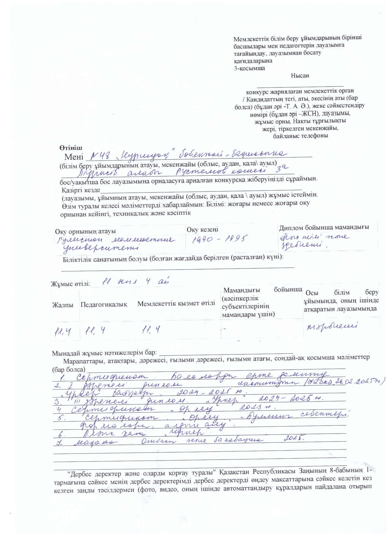 24 июль 2025 0 1 2 3 4 5 Қағиданың 113-тармағында көрсетілген құжаттар тізбесі: Қағидадағы 3-қосымшаға сәйкес нысан бойынша қоса берілетін құжаттардың тізбесін көрсете отырып, конкурсқа қатысу туралы өтініш;
