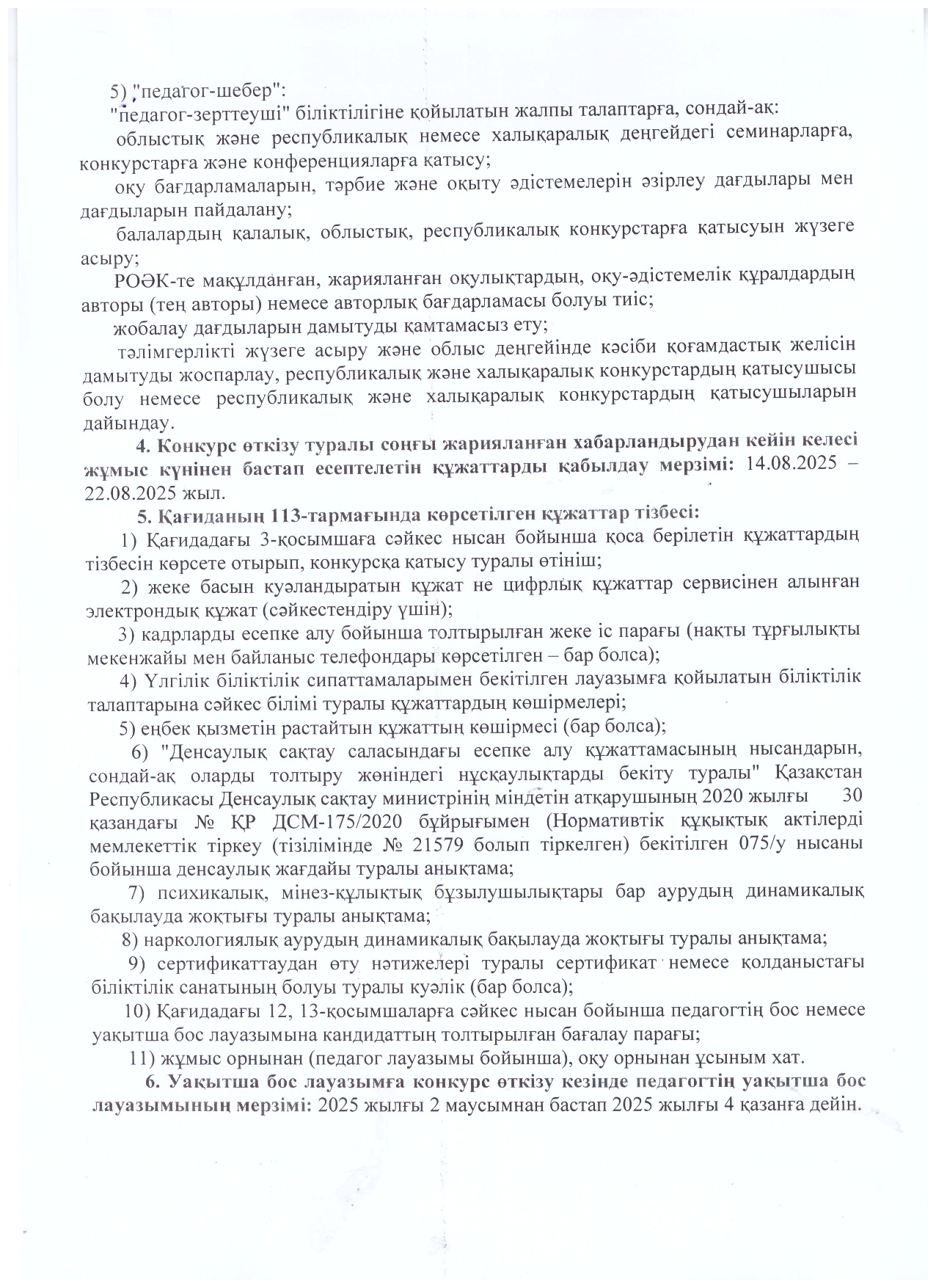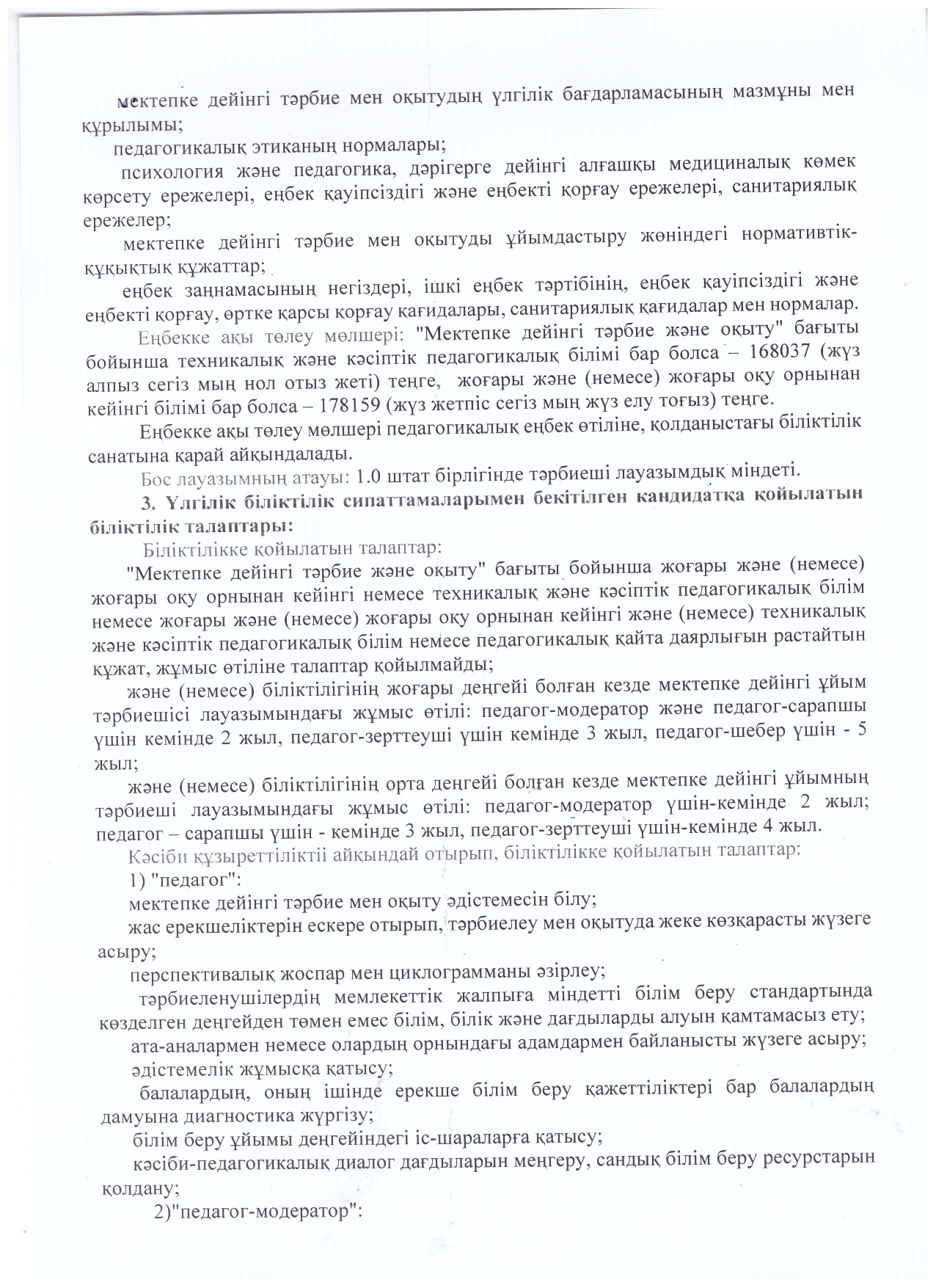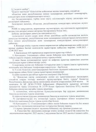 Педагог лауазымына орналасуға конкурс өткізу
