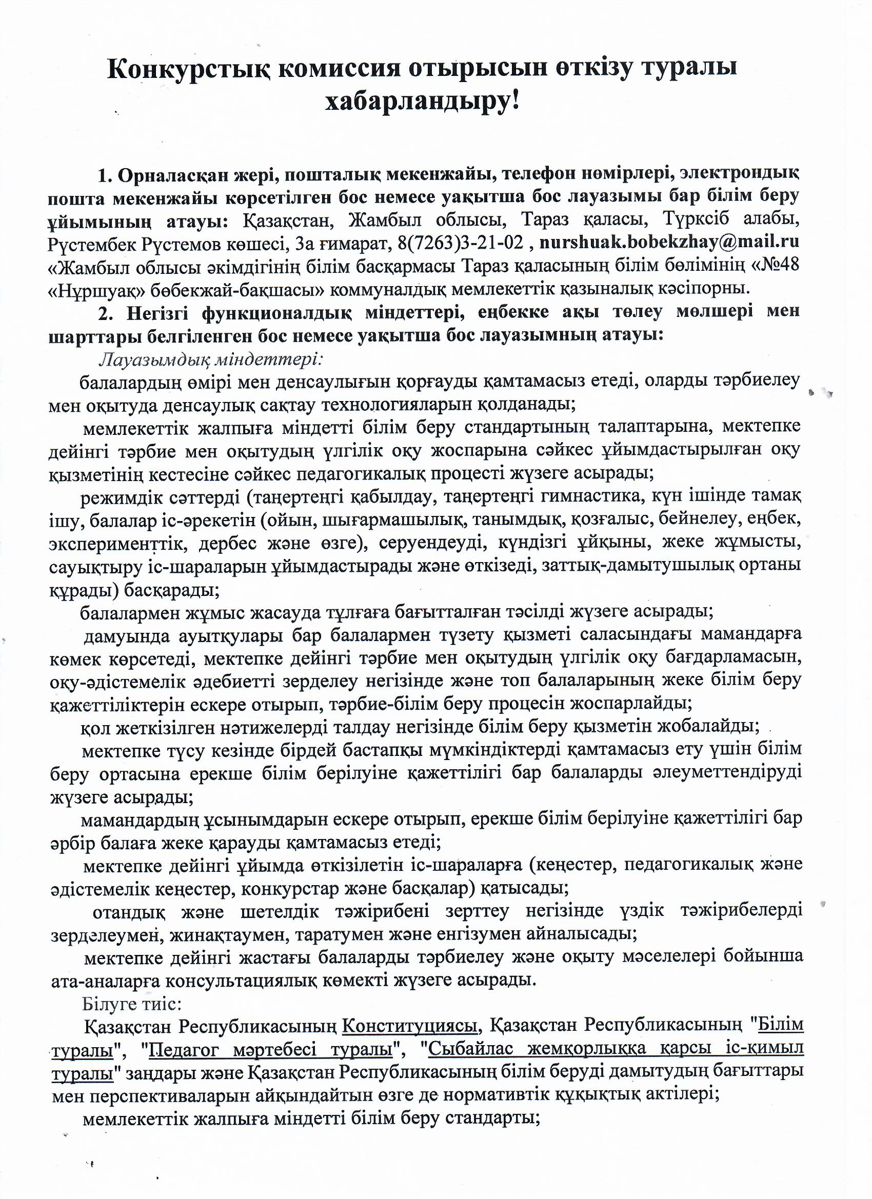 » Конкурстық комиссия отырысын өткізу туралы хабарландыру!