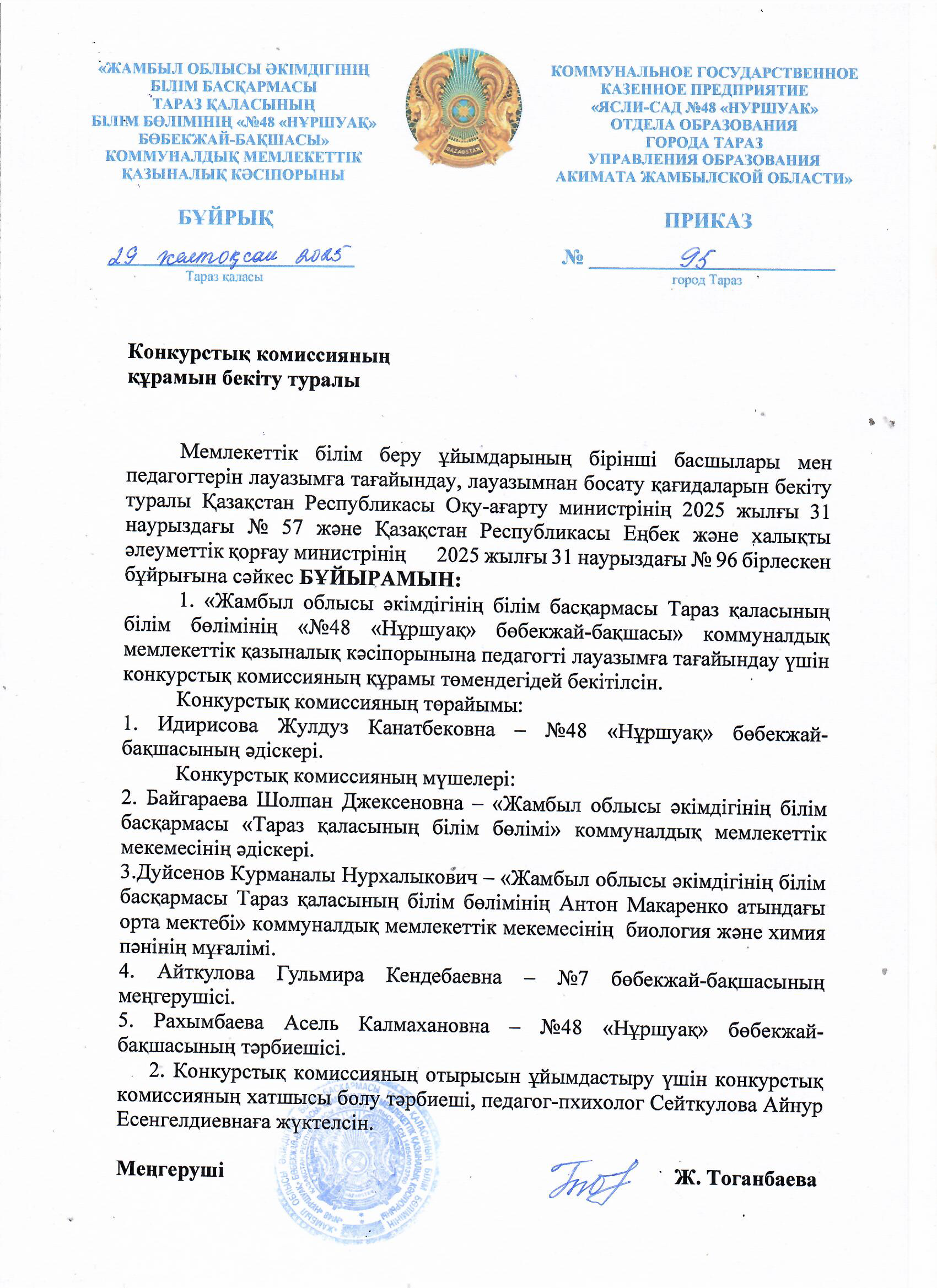 Мектепке дейінгі ұйымға педагогтерді лауазымға тағайындау туралы