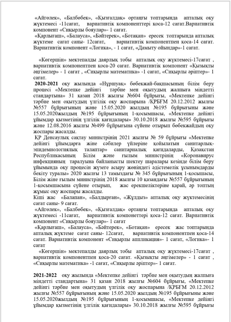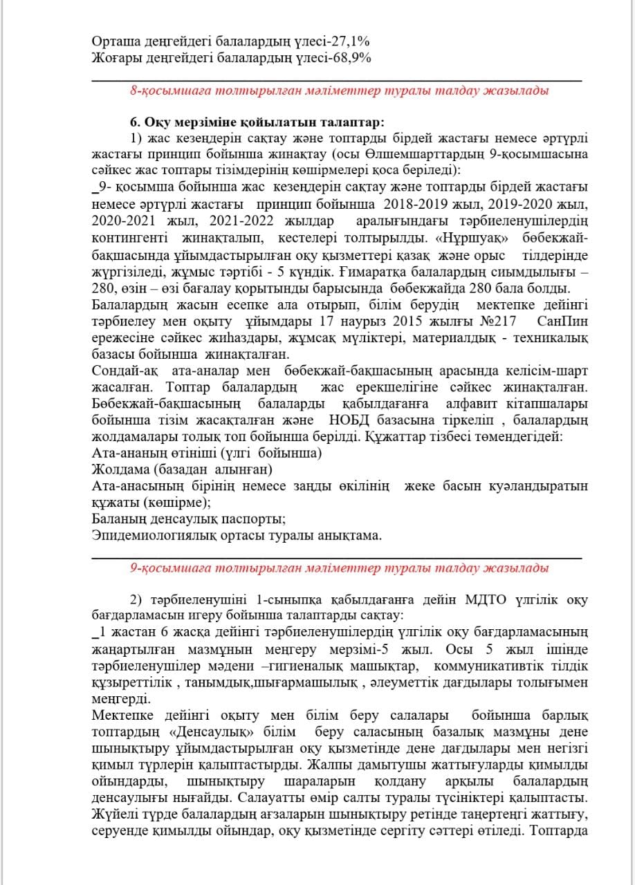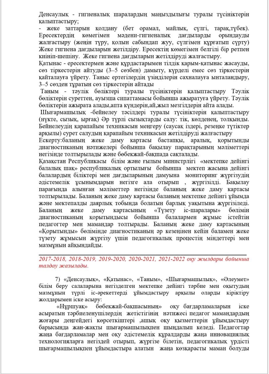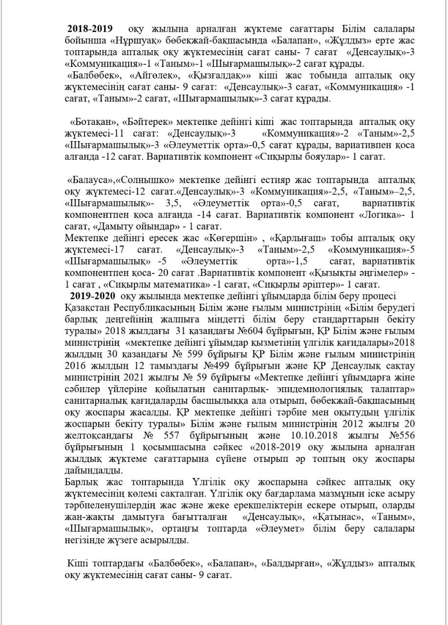 КМҚК "Нұршуақ"бөбекжай-бақшасы" мекемесінің өзін-өзі бағалау ҚОРЫТЫНДЫСЫ