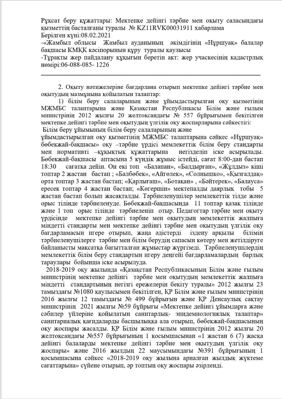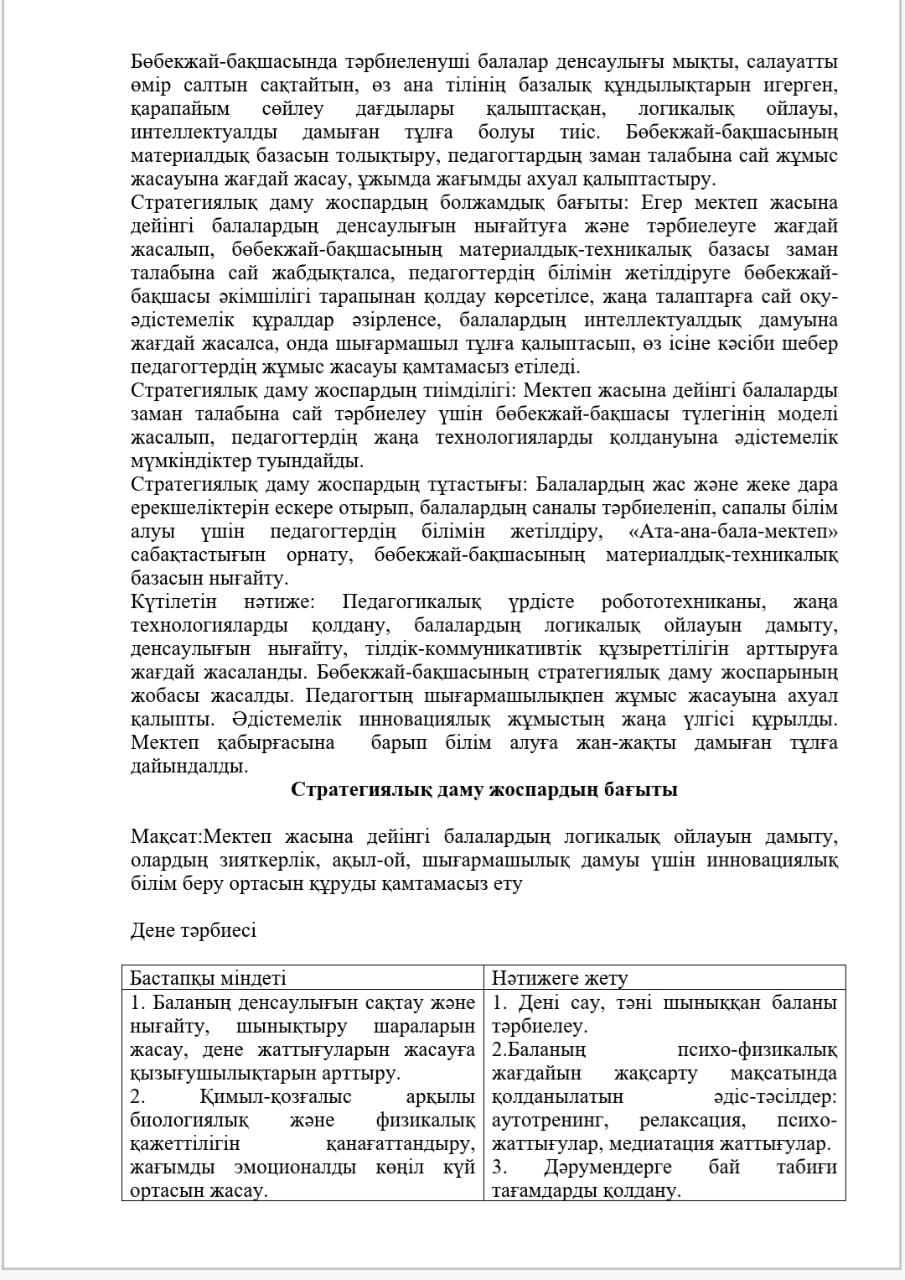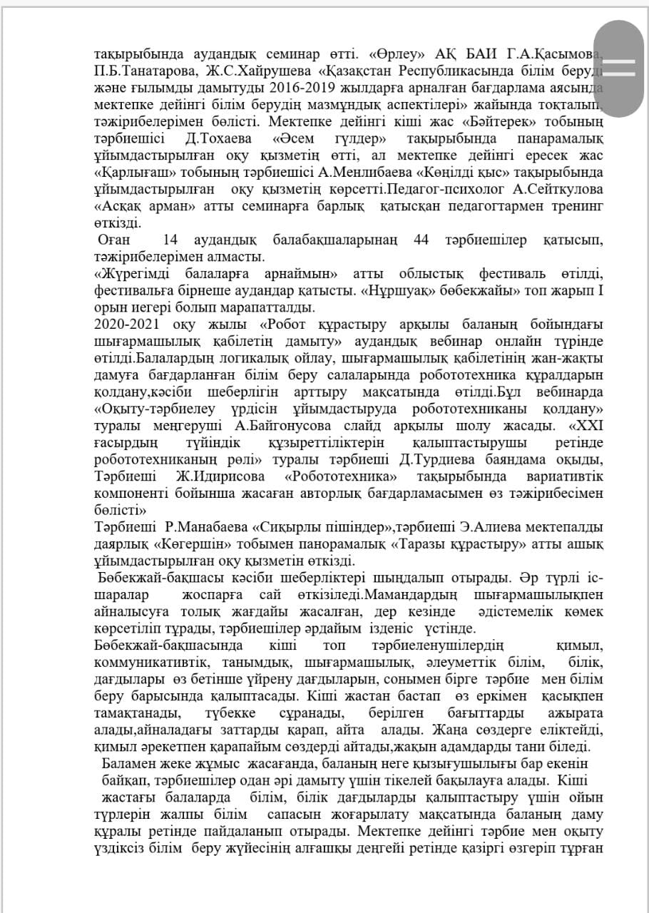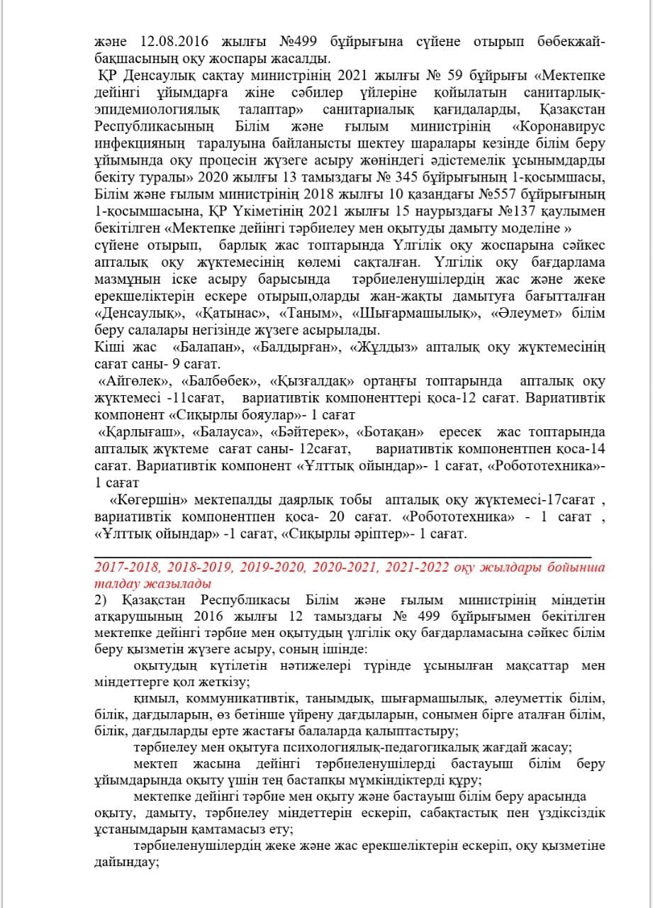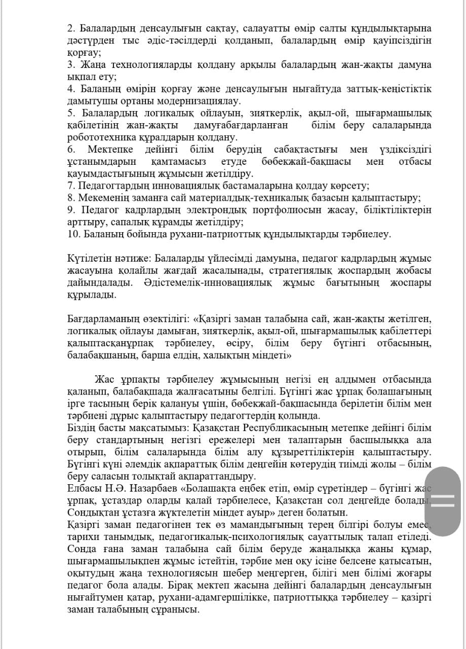 КМҚК "Нұршуақ"бөбекжай-бақшасы" мекемесінің өзін-өзі бағалау ҚОРЫТЫНДЫСЫ