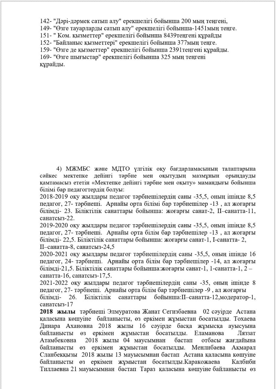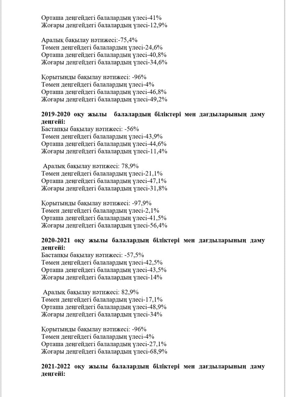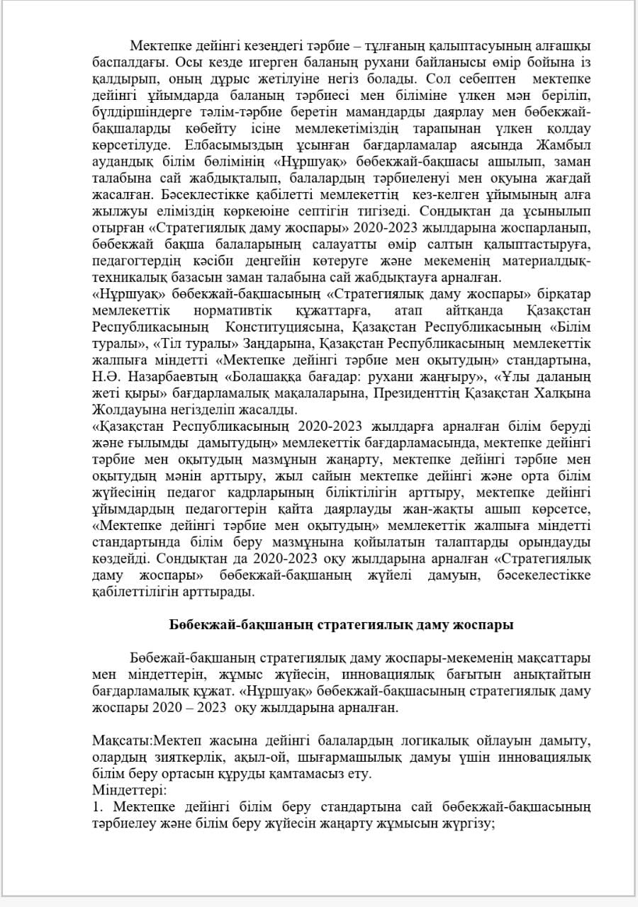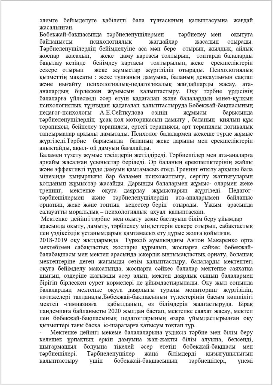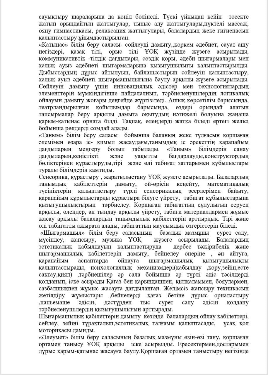 КМҚК "Нұршуақ"бөбекжай-бақшасы" мекемесінің өзін-өзі бағалау ҚОРЫТЫНДЫСЫ