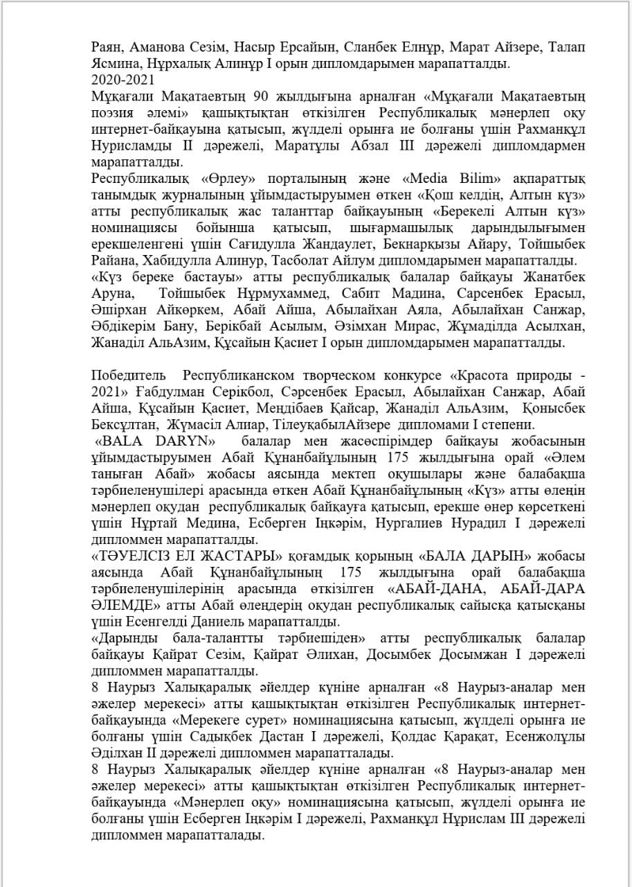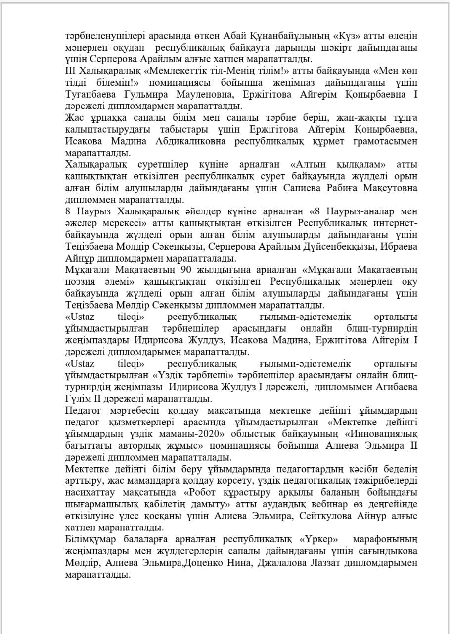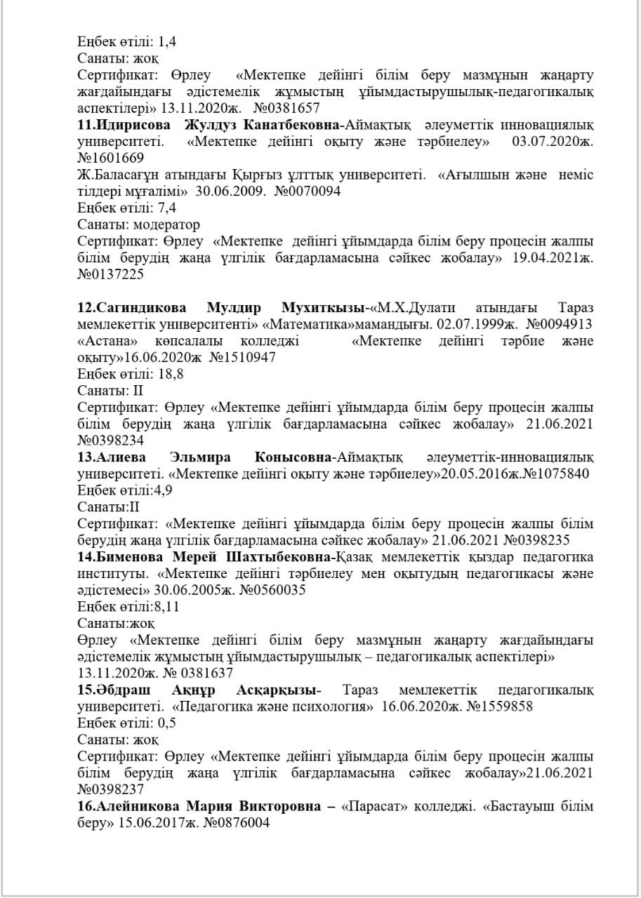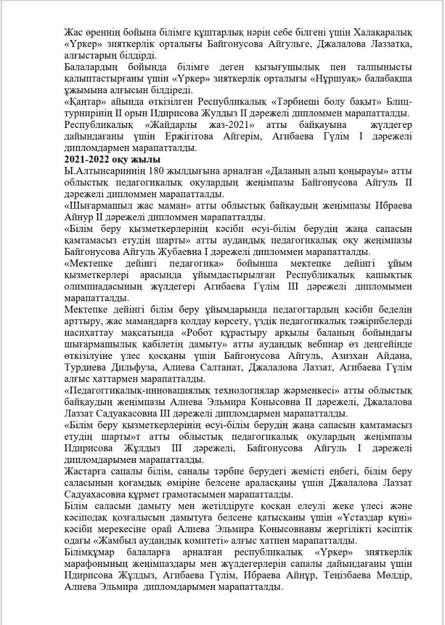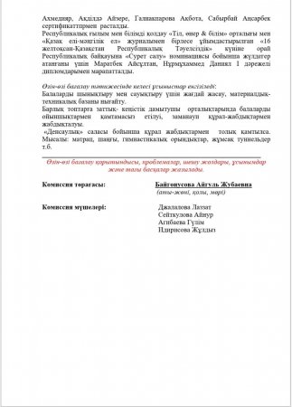 КМҚК "Нұршуақ"бөбекжай-бақшасы" мекемесінің өзін-өзі бағалау ҚОРЫТЫНДЫСЫ