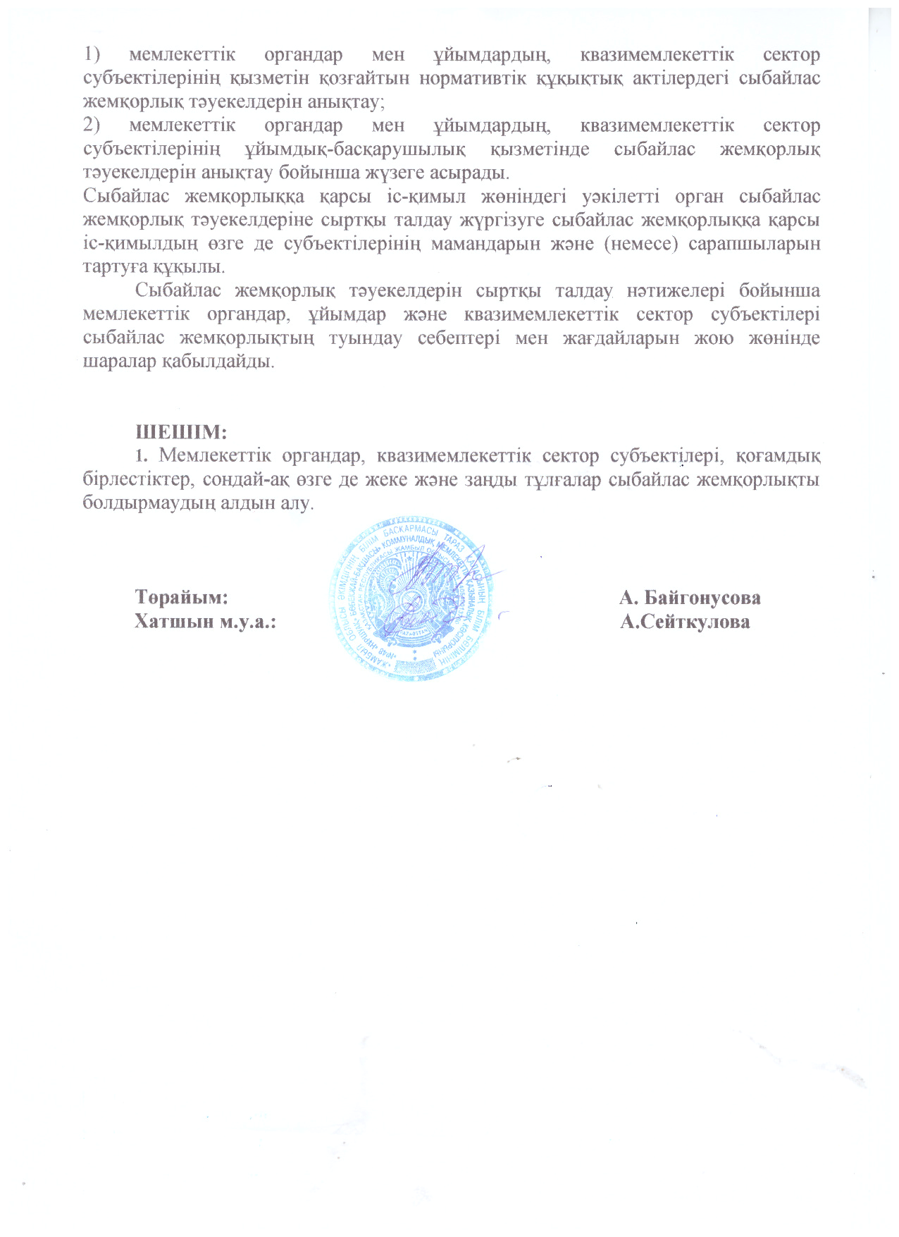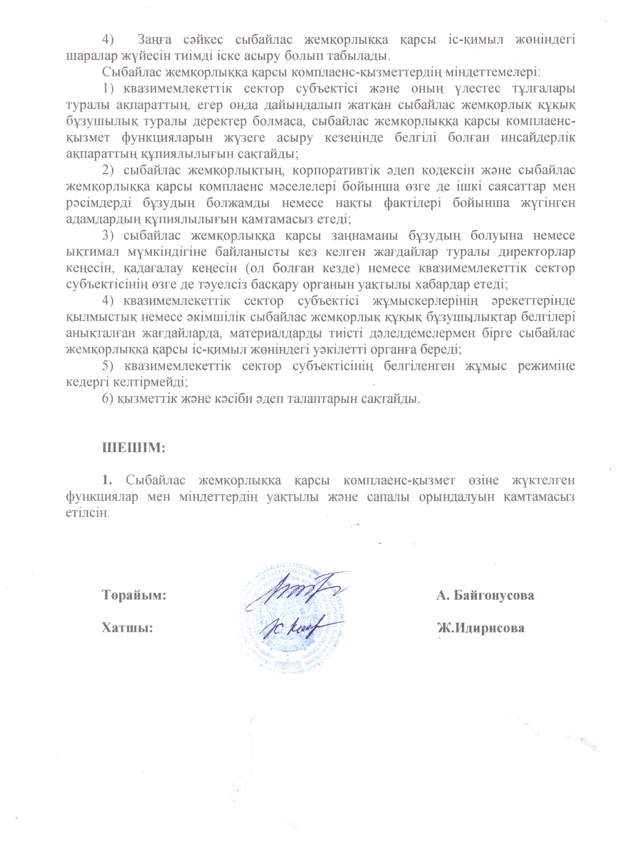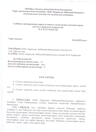 05 январь 2025 0 1 2 3 4 5 Сыбайлас жемқорлыққа қарсы іс-қимыл саласындағы қатынастарды реттеуге арналған отырыстың №2 ,3,4 ,5,6 ХАТТАМАСЫ