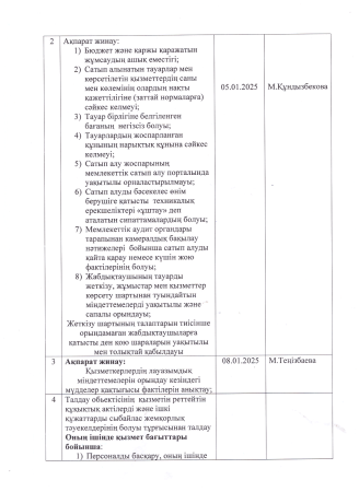 Сыбайлас жемқорлық тәуекелдеріне ішкі талдау жүргізу жөніндегі жұмыс жоспары