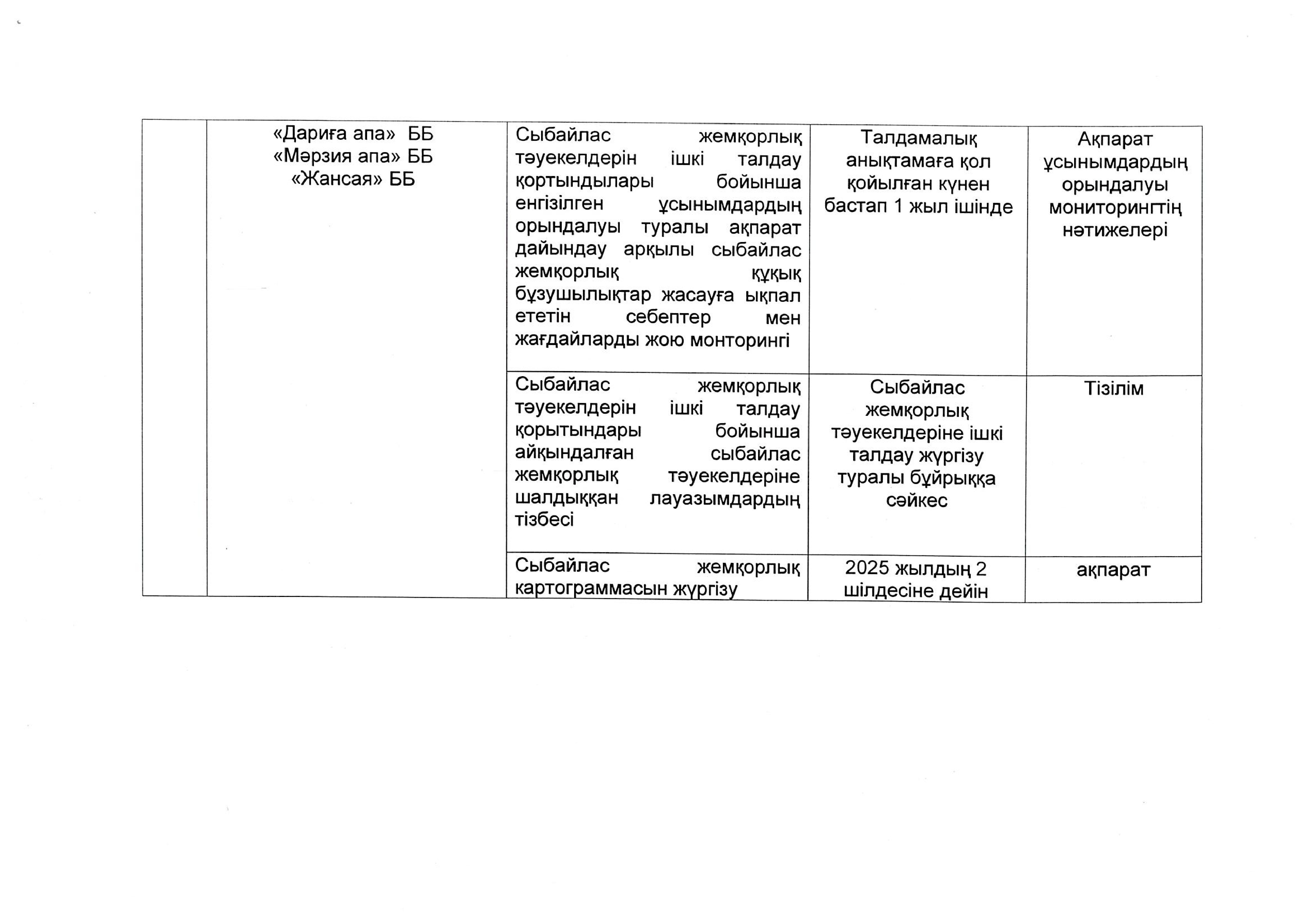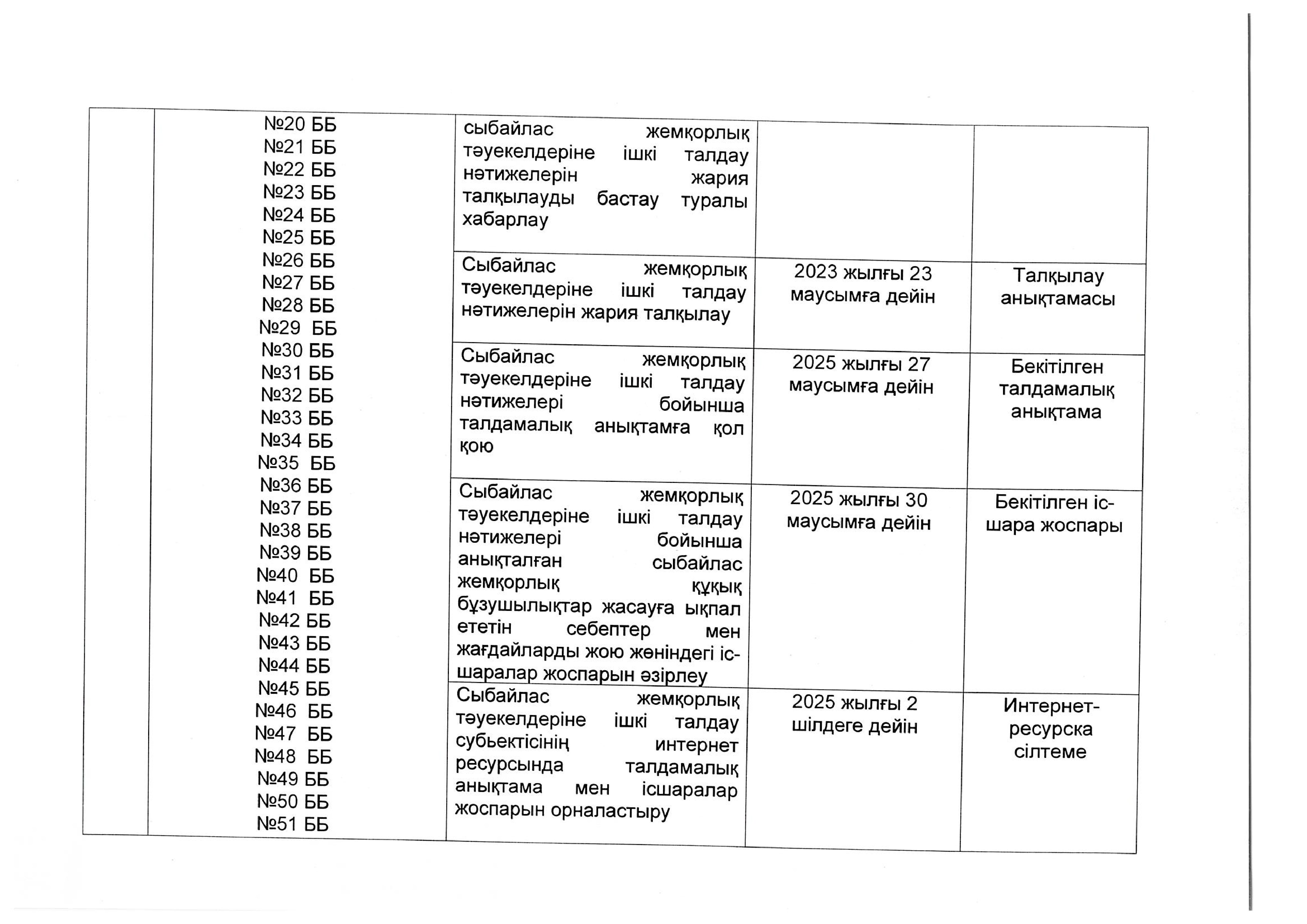 Сыбайлас жемқорлық тәуекелдеріне ішкі талдау жүргізу жөніндегі жұмыс жоспары
